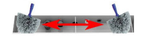 Maak de opening schoon met een rattestaart* tot zover je kunt komen, niet forceren dat is niet nodig. 1 tot 2x per maand is voldoende, afhankelijk van de vervuiling.